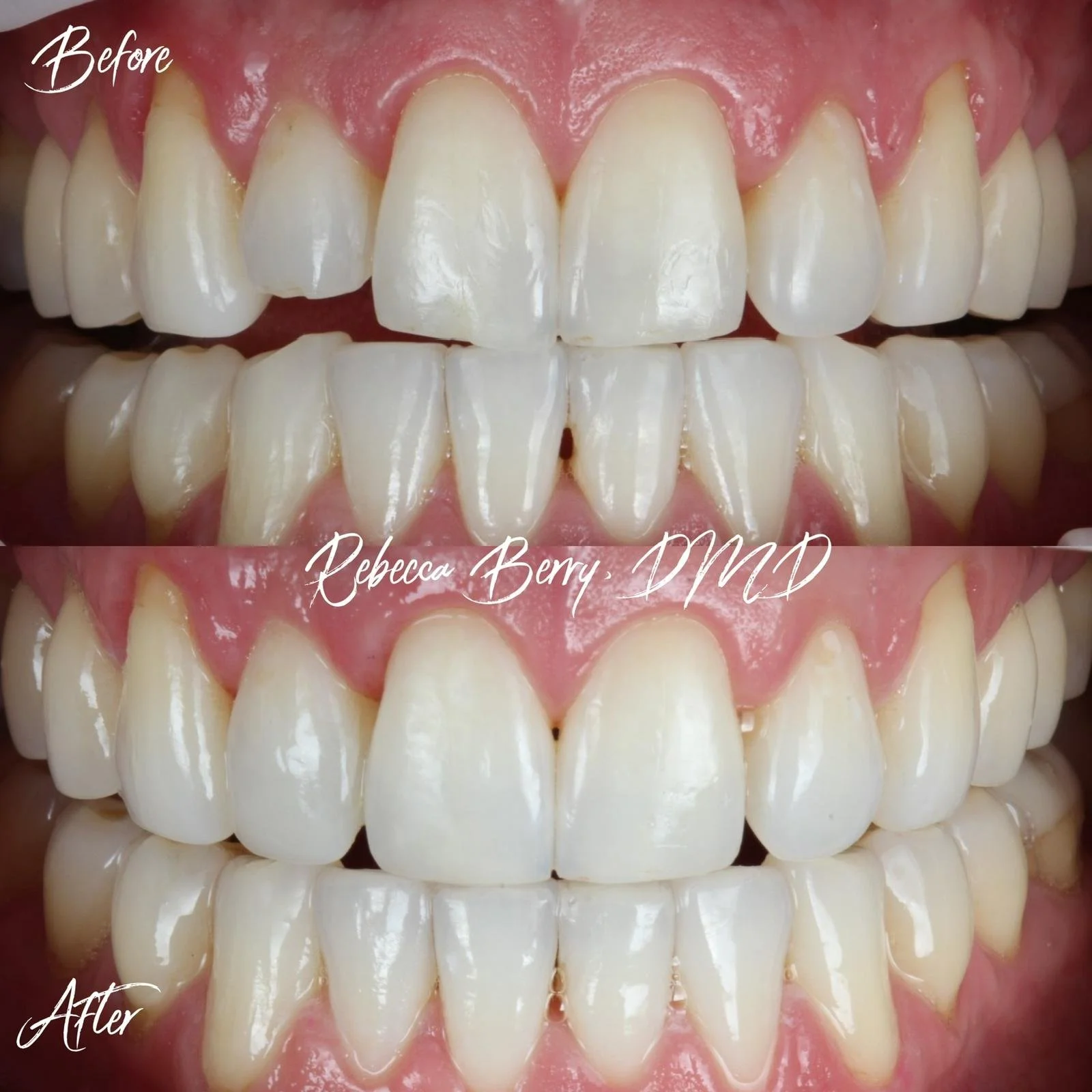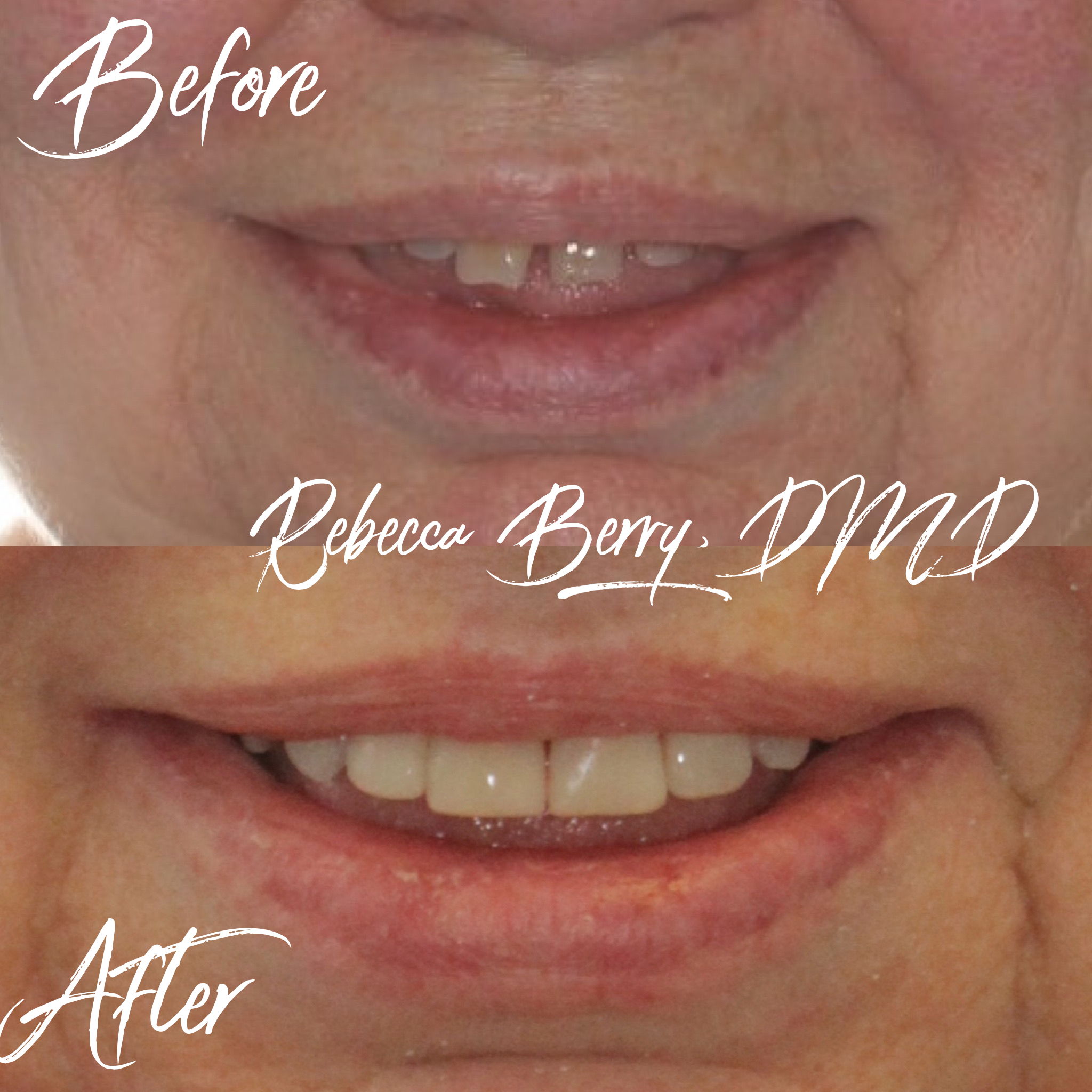 This patient was unhappy with her smile and never liked the spaces between her teeth. By bonding only 4 teeth, Dr. Berry was able to correct the shape of her small teeth to ideal proportions and give this patient a smile she is proud to show off!